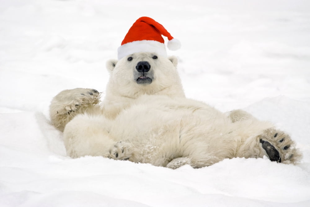 Polar Bear Wearing Santa Hat Lying On