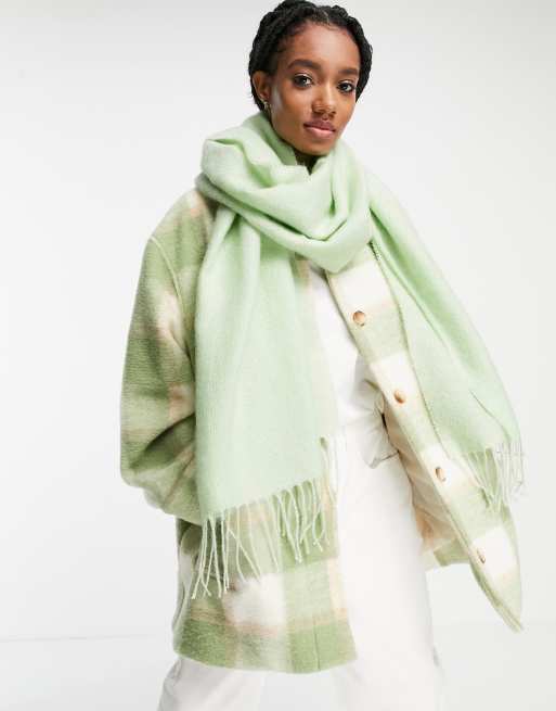 ASOS DESIGN supersoft long woven scarf with tassels in ice green | ASOS