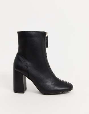 Glamorous black zip front ankle boots